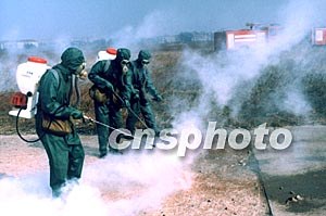 十一月下旬,中國海軍北海艦隊(duì)航空兵某機(jī)場(chǎng)進(jìn)行快速開辟直升機(jī)野戰(zhàn)機(jī)場(chǎng)預(yù)案演練,加強(qiáng)隊(duì)伍應(yīng)對(duì)突發(fā)事件的能力。圖為防化小分隊(duì)對(duì)遭“轟炸”的目標(biāo)進(jìn)行洗消作業(yè)演練,以備新野戰(zhàn)機(jī)場(chǎng)的開辟。作者:鄢潤波