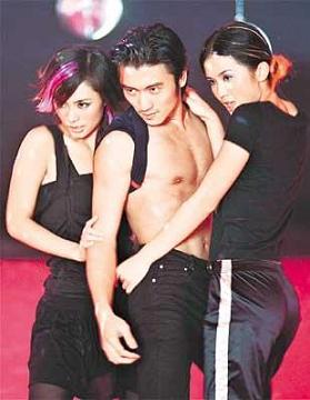 霆鋒親自操刀為Twins做MV導(dǎo)演,當(dāng)他見(jiàn)到Twins在鏡頭前勁歌熱舞,興之所至他也加入近來(lái),霆鋒還使出露點(diǎn)招數(shù),幾乎將Twins的風(fēng)頭也搶去,三人即席表演的一場(chǎng)火辣辣貼身舞,愈跳愈high。霆鋒笑說(shuō):“這個(gè)MV是我自編自導(dǎo)自演,主角應(yīng)該是我,Twins是陪襯品!