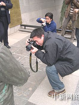 網(wǎng)絡(luò)媒體記者拍攝“歷史證人的銅版腳印”。作者:玉樹(shù)