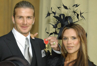 貝克漢姆的明星妻子“辣妹”維多利亞陪同貝克漢姆到白金漢宮參與典禮。她那專人設(shè)計的奢華發(fā)飾也頗搶鏡。