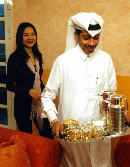 2001年7月,諸宸第一次前往穆罕默德的家鄉(xiāng)——卡塔爾。出發(fā)前,她做了一個(gè)夢(mèng),夢(mèng)到自己似乎失去了所有。那種陌生感和恐懼感一下子襲來,讓她心里頓時(shí)充滿了陰影。從北京到多哈沒有直航航班,第一站要到馬來西亞吉隆坡轉(zhuǎn)機(jī)。這是他們故事開始的地方,而現(xiàn)在她第一次前往自己的婆家,卻注定要再次來到這個(gè)讓她的命運(yùn)發(fā)生重大轉(zhuǎn)折的地方。她注視著那些身著黑袍、頭裹頭巾、面紗遮臉的阿拉伯婦女,心里充滿了別樣的情緒,想起關(guān)于多哈一片沙漠草木的傳說,不知自己的旅途將如何艱辛。
