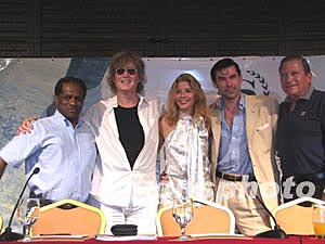 印度時代集團(tuán)主席PRANEEP GUHA、知名攝影大師DICK ZIMMERMAN、暢銷書作家CANDACE BUSHUNELL、美國當(dāng)紅電視明星CLIVE ROBERTSON、著名慈善機(jī)構(gòu)主席ORG SLONIM(從左至右) 。中新社記者:王辛莉