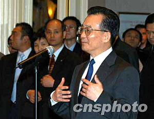中新社紐約十二月七日電(記者 陳建 趙海燕)中國總理溫家寶于美東時間七日下午抵達(dá)紐約,開始訪美之行。僅三小時之后,他就站在數(shù)百名華人面前,充滿感情地吟誦起泰戈爾的詩句:無論你走得多么遠(yuǎn),你的心總和我連在一起;無論黃昏時樹的影子有多長,它總是和樹根連在一起!斑@正是華僑華人、留學(xué)生和祖國的關(guān)系。”此言一出,掌聲四起。