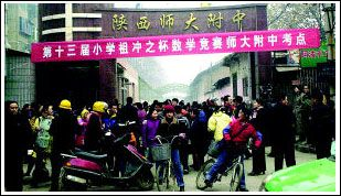 當(dāng)記者下午來到考點(diǎn)之一的陜師大附中,只見大門口擠滿應(yīng)試的學(xué)生和家長(zhǎng),長(zhǎng)時(shí)間不愿離去。一位家長(zhǎng)氣憤地問:“難道孩子手中的準(zhǔn)考證、校門口懸掛的橫幅,還有大紅印章都是假的?政府一會(huì)兒讓考,一會(huì)兒不讓考,這是咋回事?”許多學(xué)生和家長(zhǎng)擁入校辦公室討說法,一位張姓主任說,學(xué)校只提供教室,考與不考都是尤廉那兒通知的。