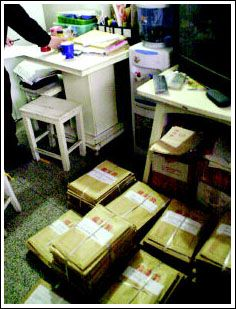 知情學(xué)生家長(zhǎng)反映,周日他們將組織一次大規(guī)模數(shù)學(xué)考試,西安市教育局局長(zhǎng)李尚儉聞?dòng)崳概删只殛?duì)前往查處。昨日稽查隊(duì)一行4人來到尤廉家中,看到地上堆滿密封好的整袋整袋試卷,各考點(diǎn)的人陸續(xù)前來領(lǐng)取考卷。面對(duì)稽查人員的詢問,尤廉和楊益新說,他們這次考試未向任何部門申報(bào),幾年來一直是這樣做的。這次每個(gè)考生收取報(bào)名費(fèi)8元,若要他們編寫的“祖沖之杯”數(shù)學(xué)邀請(qǐng)賽資料,再加收2元。這次報(bào)名考生共有9000多人。當(dāng)聞?dòng)嵹s來的長(zhǎng)延堡派出所副所長(zhǎng)朱小青追問印章來由時(shí),楊益新承認(rèn)印章是私刻的。民警后來在房間電腦中發(fā)現(xiàn)這次考生實(shí)際人數(shù)竟達(dá)14919人。考點(diǎn)分別設(shè)在陜師大附中、高新一小、鐵一中等十幾所學(xué)校。記者在現(xiàn)場(chǎng)還發(fā)現(xiàn),他們印制的“2004年全國(guó)小學(xué)數(shù)學(xué)奧林匹克參賽辦法”已出爐,其中對(duì)收費(fèi)辦法、售賣材料及學(xué)生聯(lián)系辦法都有詳細(xì)要求;槿藛T隨后查扣了剩余試卷,并責(zé)令他們盡快通知各考點(diǎn)停考。但事情遠(yuǎn)沒有那么簡(jiǎn)單。