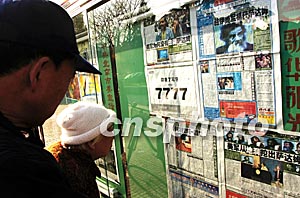 伊拉克前總統(tǒng)薩達姆被捕消息十二月十五日成為北京多家報紙的頭版頭條新聞,并以大篇幅予以報道。圖為北京市民在街頭《北京青年報》欄,逐條逐句認真閱讀該項新聞。中新社記者:鄒憲