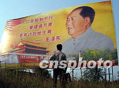 國道三二三線廣東韶關(guān)南雄市城區(qū)南面路邊,新近豎起了一塊大型毛澤東語錄牌。一九五七年三月,毛澤東在最高國務(wù)會(huì)議第十一次會(huì)議上說:“要提倡節(jié)育,要有計(jì)劃地生育!弊髡:馮昶