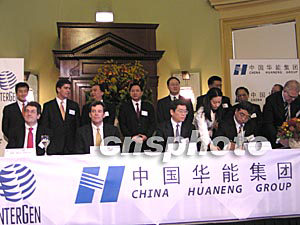 中國華能集團(tuán)公司成功競標(biāo)收購美國國際電力公司在澳大利亞的全資子公司奧絲電力百分之五十的股份,總購買價格為2.27億美元。交易雙方于16日在布里斯班正式簽署買賣協(xié)議。中國華能集團(tuán)公司總經(jīng)理李小鵬(后排左4)說,此次收購是華能在海外的第一次重大投資。中新社記者 劉雨生 攝