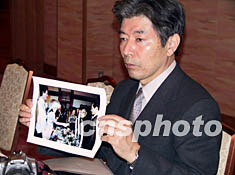 日本業(yè)余攝影師松田定明向中國記者展示二十五年前拍攝的鄧小平出人意料出席日本新人婚禮的獲獎(jiǎng)圖片《友好的瞬間》。該圖片獲得一九七八年《讀賣新聞》年度大獎(jiǎng)。作者:劉莉生