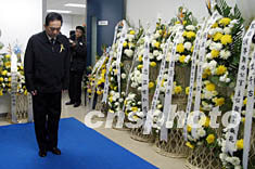 十二月十七日,中共中央臺辦、國務(wù)院臺辦主任陳云林、海峽兩岸關(guān)系協(xié)會(huì)常務(wù)副會(huì)長李炳才一行在北京參加臺灣著名企業(yè)家、英業(yè)達(dá)集團(tuán)副董事長溫世仁先生追悼會(huì),對其在兩岸經(jīng)貿(mào)合作和大陸西部開發(fā)所做的杰出貢獻(xiàn)予以高度評價(jià),并向其家屬轉(zhuǎn)達(dá)誠摯的慰問。溫世仁先生十二月七日在臺北因病逝世。中新社記者:盛佳鵬