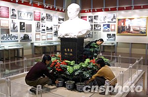 2003年12月26日是毛澤東誕辰110周年,位于北京天安門廣場上的毛主席紀念堂將舉辦多項活動隆重紀念,紀念堂中的“毛澤東展室”經(jīng)過精心布置準備接待參觀者。中新社記者:任晨鳴