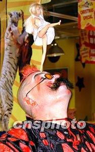 來(lái)自俄羅斯的莫斯科馬戲團(tuán)在香港進(jìn)行為期數(shù)月的演出活動(dòng),全新的馬戲節(jié)目為香港觀眾帶來(lái)歡樂(lè)、刺激的新感受。圖為馬戲團(tuán)小丑為賓客表演雜耍。中新社記者:錢(qián)興強(qiáng)