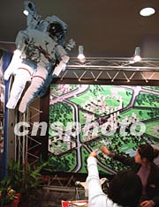 十二月中旬正在北京舉行的冬季房展會上,一家房地產開發(fā)商請來“太空人”模型為樓盤促銷。作者:張雷