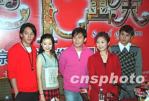 根據(jù)幾米同名漫畫改編的賀歲影片《地下鐵》二十二日在北京舉行首映式,主要演員張震、董潔、梁朝偉、楊千嬅、范植偉(從左到右)出席。作者:高遠(yuǎn)