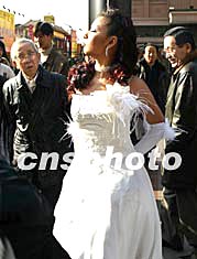 十二月二十三日,北京氣溫繼續(xù)回升,白天最高溫度高達(dá)十四攝氏度。一名身著露肩裝的模特在街頭作秀,吸引不少行人駐足觀看。中新社記者:鄭萍萍