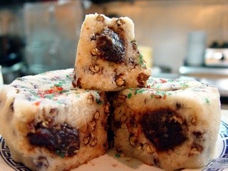 據(jù)臺灣媒體報道,1973年圓山飯店的“北方小館”開幕,那時的廚師就已經(jīng)開始要不定期為宋美齡準(zhǔn)備紅豆松糕。這一款紅豆松糕由糯米粉蒸煮,里頭包著濃濃香香的紅豆沙,外頭再鋪點紅棗與青木瓜絲的松糕,吃起來不甜不膩、口感松軟,因此深受宋美齡喜愛。