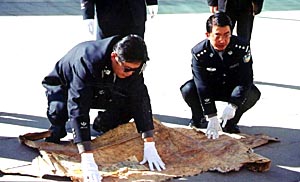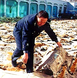 拉薩海關(guān)緝私局副局長李建文撣撣身上的土告訴記者,10月10日他們將這批動物皮張從查獲地點運回拉薩海關(guān)時,動用了全部警力,花了3個小時才將皮張數(shù)量點清。他說,根據(jù)黑市上的價格,這批動物皮張的總價值超過1000萬元。“當(dāng)然,由于孟加拉虎、金錢豹和水獺都是瀕危動物,依照國家法律和國際公約都是明令禁止射殺、販賣的,所以它們的價值遠非金錢可以衡量。”李建文同時強調(diào)。