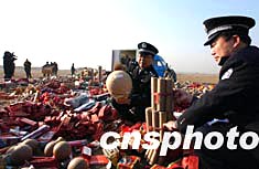 圖:北京警方集中銷毀非法、偽劣、超標(biāo)煙花爆竹
