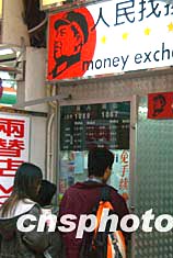 十二月二十六日是中國已故毛澤東主席誕辰110周年紀念日,在香港繁華的銅鑼灣街頭,一家兩替店懸掛的毛澤東像顯得引人注目。中新社記者:錢興強