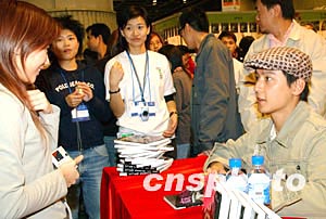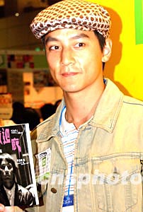 香港藝員吳彥祖十二月二十六日在香港會(huì)展中心舉行的“書(shū)節(jié)2003”上,為電影原著小說(shuō)《妖夜回廊》簽名。中新社記者:錢(qián)興強(qiáng)