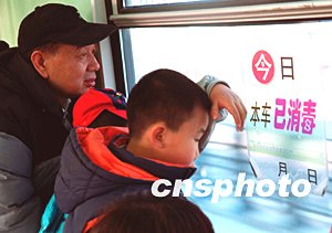 12月27日廣東省宣布發(fā)現(xiàn)一例SARS疑似病例后,北京各公共交通工具包括剛剛開通的地鐵八通線繼續(xù)堅(jiān)持嚴(yán)格的消毒制度。作者:張雷