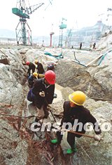 圖:三峽大壩主體工程進行最后一塊清基澆面施工