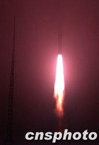 北京時(shí)間三十日凌晨三時(shí)許,中國(guó)“雙星計(jì)劃”的第一顆衛(wèi)星“探測(cè)一號(hào)”在西昌衛(wèi)星發(fā)射中心由“長(zhǎng)征二號(hào)丙”改進(jìn)型運(yùn)載火箭發(fā)射升空。至此,二00三年中國(guó)六次航天發(fā)射全部告捷,也為中國(guó)航天年畫上一個(gè)圓滿的句號(hào)。本次衛(wèi)星發(fā)射是中國(guó)運(yùn)載火箭迄今為止最高的一次飛行,“探測(cè)一號(hào)”也因此成為中國(guó)目前軌道距地球最遠(yuǎn)的一顆衛(wèi)星。 中新社記者 張煒 攝
