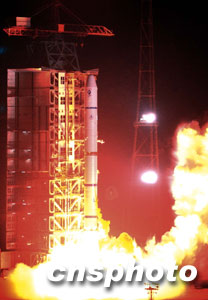 一連串短促清脆的指令發(fā)出后,金牌火箭“長征二號丙”改進型運載火箭噴射出桔紅色的熊熊烈焰,在驚天動地的呼嘯聲中沖天而起,托舉著“探測一號”衛(wèi)星向九霄云外飛去。火箭越飛越高、越飛越遠,只一霎那功夫,就從人們的視線中消失了。