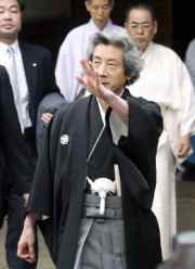 據(jù)共同社報道,小泉當天上午參加在皇宮舉行的“新年祝賀儀式”后,身著和服參拜了靖國神社。對于元旦的參拜,小泉辯稱:“我們叫‘元旦參拜’。一直想什么時候(于元旦)參拜。”