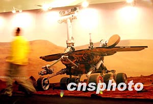 美國(guó)“勇氣”號(hào)機(jī)器人漫游者日前成功登陸火星后,北京一商廈適時(shí)展出相關(guān)照片,廣受市民歡迎。中新社記者:武仲林