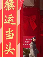 北京商家打出“猴運當頭”賀歲標語