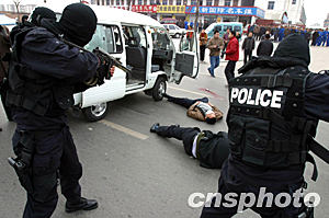 中新網(wǎng)1月8日電 據(jù)河南報業(yè)網(wǎng)-大河報報道,昨日,鄭州市公安局在全市范圍內(nèi)舉行了一場有針對性的打擊搶劫金融網(wǎng)點、運鈔車犯罪實戰(zhàn)演練。