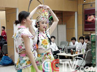 在演唱類節(jié)目候場區(qū),記者同時見到了林依倫、蔣勤勤等人,他們正在熱烈地探討著什么,這讓記者有些摸不著頭腦,“他們該不會一起搞聯(lián)唱吧?”正在內心嘀咕,看林依倫一個人走到了旁邊,記者立即抓住時機上前詢問起來!拔胰ツ曜髁艘徊恳魳穭,導演覺得挺好,所以就來了。音樂劇名字叫做《陽光健身房》,在這出音樂劇中,我將出任一名健身教練,與蔣勤勤等人合演!绷忠纻惖绞且稽c也不避諱,快言快語的。問及林依倫今年是第幾次參加春節(jié)晚會,有什么新感受時,林依倫歪著頭想了一下回答說:“第七次,最大的感受是今年又不能跟家人一起過年了。本來已經(jīng)想好今年要跟家人一起在家過年的,但看來這個愿望又要落空了!