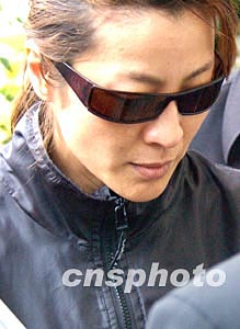 香港著名藝人梅艷芳喪禮于元月十一日設(shè)靈公祭, 著名藝人楊紫瓊來到香港殯儀館拜祭梅艷芳。 作者:錢興強(qiáng)