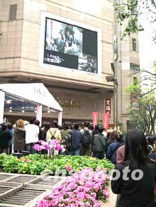 香港一代歌后梅艷芳1月12日舉行出殯,午間位于銅鑼灣時(shí)代廣場(chǎng)電視大屏幕下聚集大批市民駐足觀(guān)看電視直播。中新社記者:鄧慶樂(lè)