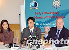 香港警方及國(guó)際刑警組織秘書(shū)處于元月十三日在港聯(lián)合舉辦“國(guó)際刑警全球聯(lián)絡(luò)系統(tǒng)I-24/7”訓(xùn)練課程及工作坊開(kāi)幕儀式,該系統(tǒng)為國(guó)際刑警各分局進(jìn)行了技術(shù)革新,提供一個(gè)更加安全有效,并且更符合成本效益的通訊系統(tǒng),以供亞洲地區(qū)中心局的警務(wù)人員參加。圖為國(guó)際刑警組織秘書(shū)處負(fù)責(zé)有關(guān)聯(lián)絡(luò)系統(tǒng)的主管Stanley morris(右一)在儀式上向傳媒介紹有關(guān)情況。作者:錢(qián)興強(qiáng)