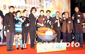 港產(chǎn)電影《魔幻廚房》1月12日晚在香港時代廣場舉行群星首映禮,該片主要演員言成旭、鄭秀文、張燊悅、Maggie Q、王敏德均出席活動,眾星與導(dǎo)演及電影公司高層齊舉杯預(yù)祝電影上演票房旺收!赌Щ脧N房》將于15日起在香港上映。作者:鄧慶樂