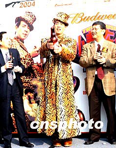 歌星陳小春1月14日在香港舉行《陳小春夜生活演唱會》記者會,陳小春會上為演唱會預(yù)祝成功用贊助商特別制的大型啤酒噴紙屑。作者:鄧慶樂
