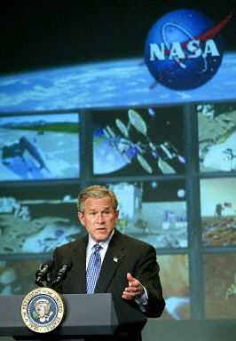 布什當(dāng)天在此間的美國國家航空航天局總部宣布這個(gè)計(jì)劃時(shí)稱,過去三十年,人類在太空的足跡沒有超過三百八十六英里,只相當(dāng)于華盛頓到波士頓的距離,F(xiàn)在是美國邁出下一步的時(shí)候了。