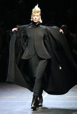 1月18日在法國(guó)巴黎,模特演繹了在服裝界中素有藝術(shù)家美稱(chēng)的日本服裝設(shè)計(jì)師——山本耀司設(shè)計(jì)的2004春夏時(shí)尚女裝。