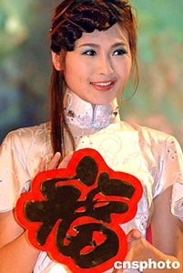 圖:模特手捧新春福字恭賀新禧