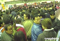 春節(jié)期間,香港羅湖口岸管理站加強(qiáng)各項(xiàng)管理措施,及時(shí)疏導(dǎo)出入關(guān)口的人潮。香港特別行政區(qū)行政長(zhǎng)官董建華等政府官員,元月二十日來(lái)到羅湖口岸進(jìn)行巡視。作者:錢(qián)興強(qiáng)  羅湖口岸客流量明顯增大,往返于香港、深圳的大批客人等候過(guò)關(guān)。作者:錢(qián)興強(qiáng)