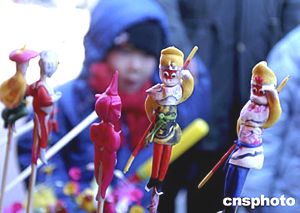“孫悟空面人”在首屆北京兒童廟會(huì)上向小朋友招手致敬。中新社記者:武仲林