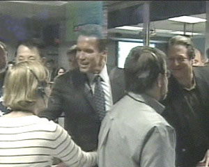 中新網(wǎng)1月25日電 據(jù)美國有線新聞網(wǎng)消息,美國加州州長施瓦辛格在“機遇”號火星探測器成功登陸火星后,親臨指揮室向現(xiàn)場人員表示祝賀。