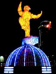 臺(tái)北縣當(dāng)局指出,今年的燈會(huì)相當(dāng)有看頭,這座象征“登峰造極”的科技獼猴主燈共使用一萬(wàn)五千個(gè)燈泡,除了延續(xù)往年的360度旋轉(zhuǎn),也是第一次采取油壓升降的上下動(dòng)態(tài),同時(shí)搭配高科技聲光,燈座周圍還會(huì)發(fā)出熊熊火焰,光彩奪目的效果將創(chuàng)歷年之最。