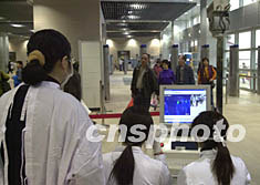 澳門新關(guān)閘邊檢大樓二日開(kāi)始啟用,新的出入境大廳使用了許多先進(jìn)的設(shè)備,圖為入境大廳使用的測(cè)溫設(shè)備在入境人員不留意間已經(jīng)將體溫測(cè)出。中新社記者:李剛