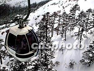 中國農歷猴年正月,乘坐纜車前往云南麗江玉龍雪山,展現(xiàn)在人們面前如詩如畫仙境般的景色,令人心曠神怡。中新社記者:趙振清