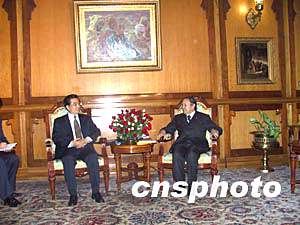 正在阿爾及利亞進(jìn)行國事訪問的中國國家主席胡錦濤當(dāng)?shù)貢r(shí)間三日晚上與阿總統(tǒng)布特弗利卡舉行會(huì)談,雙方就發(fā)展中阿傳統(tǒng)友誼、深化雙邊友好合作以及共同關(guān)心的國際和地區(qū)問題深入交換了意見。中新社記者 齊彬 攝