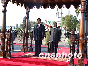 三日下午,胡錦濤抵達(dá)阿爾及爾,開始他此次歐非四國之行的最后一站。傍晚,當(dāng)胡錦濤來到位于阿爾及爾市郊穆拉迪高地的總統(tǒng)府時(shí),總統(tǒng)府儀仗隊(duì)持槍敬禮,軍樂隊(duì)奏起歡迎曲。在胡錦濤檢閱了總統(tǒng)府儀仗隊(duì)后,等候在門前的布特弗利卡迎上前去,與胡錦濤熱烈握手歡迎。這是自去年法國埃維昂南北領(lǐng)導(dǎo)人非正式對話會后,胡錦濤同布特弗利卡的第二次會晤。