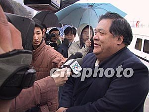率團參加馬尾元宵節(jié)燈會活動的馬祖知名人士陳振清(右一),四日抵達馬尾港向馬尾鄉(xiāng)親致以新春的祝福。作者:劉可耕